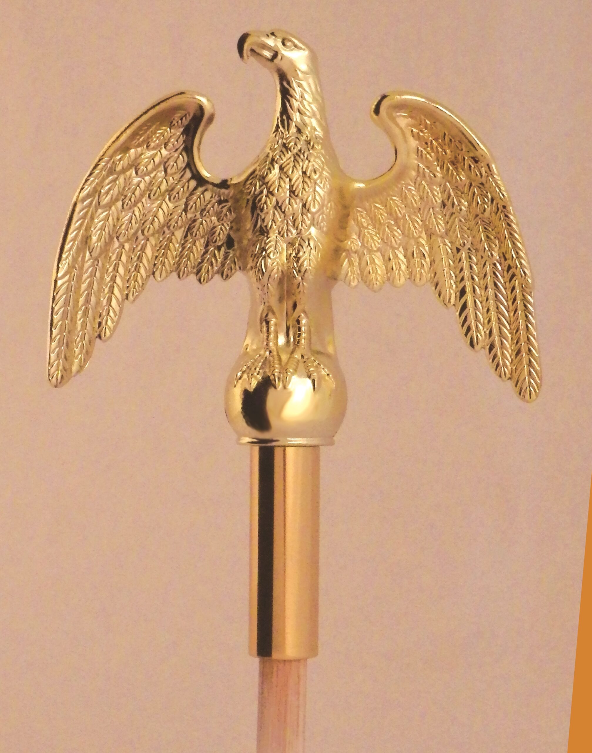 Parade marching outfit for flag bearers that includes a 4’x6′ U.S. Flag, oak flag pole, aluminum eagle ornament, web carrying belt and a carrying bag.