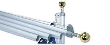 High quality aluminum 3 section residential flagpole with rope, gold ball flagpole topper, truck, and aluminum flag snaps from Martin’s Flag Company.