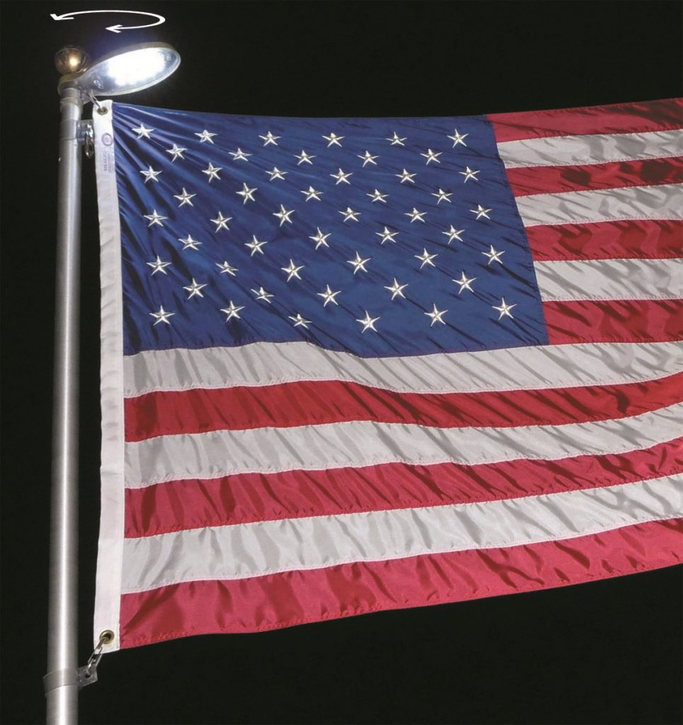 - You have the ability to put a solar light at the top that keeps the flag lit at night.