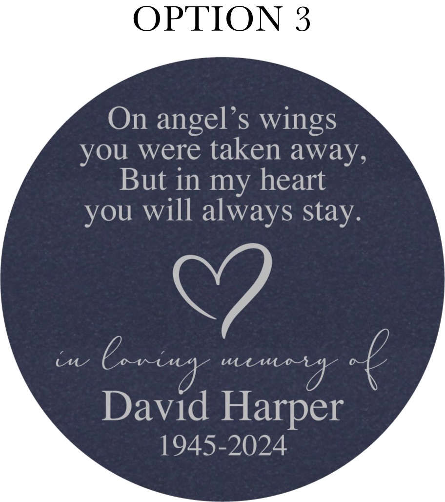 We are also able to engrave the circular wind sail at the bottom of the chime with custom sayings, names etc. Choose the one side you want as a message and then you could put the names or something on the opposite side. This is a great gift idea for a wedding, memorial, baby shower and more. The length of the chime in the description is from the very top hanging ring to the bottom of the circular sail.