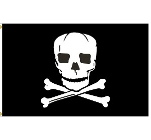 High quality outdoor nylon 3’x5′ Skull and Crossbones Jolly Roger Flag made in the USA from Martin’s Flag Company.